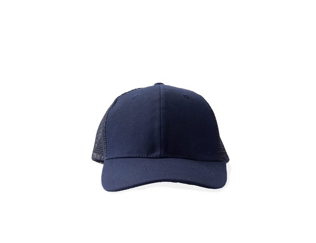Boné de aba curva confeccionado em poliéster e tela respirável em nylon.
